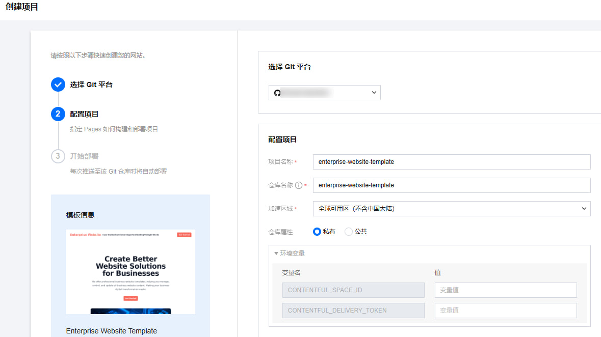 Edgeone 通过Pages 模板创建项目的操作页面截图
